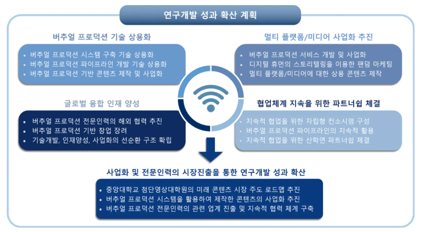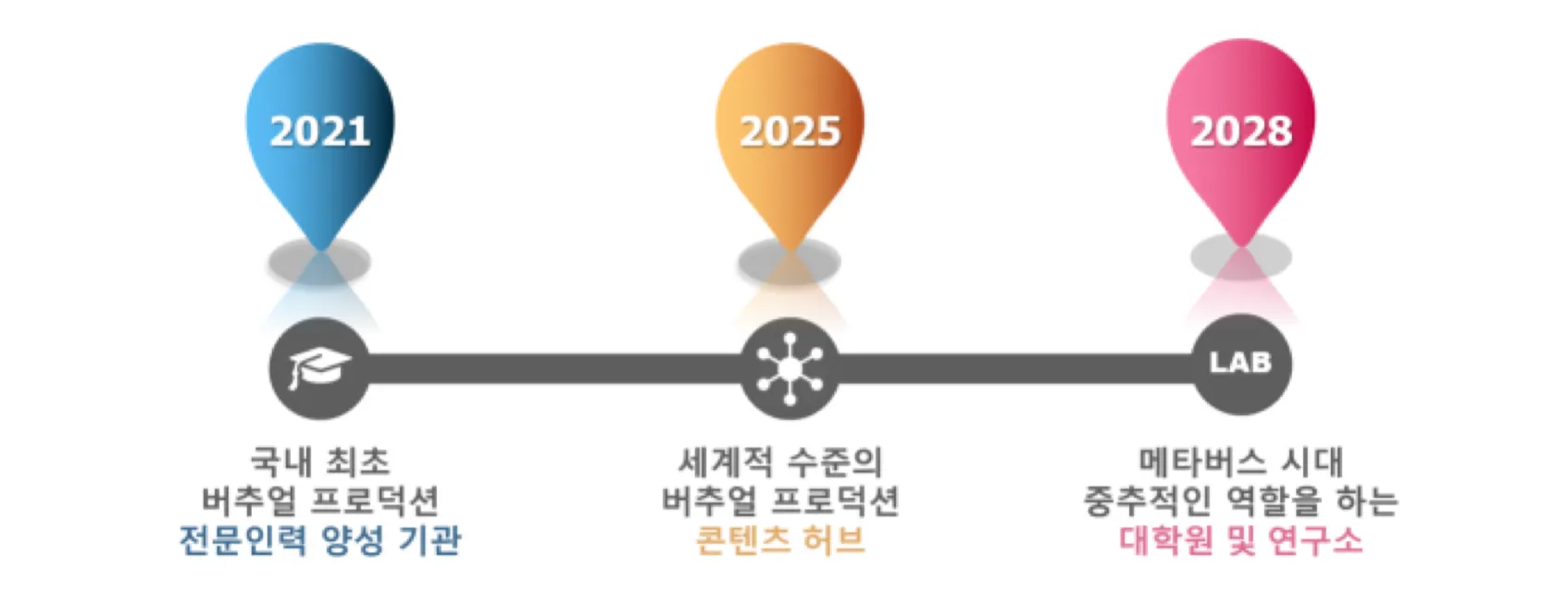 실제와 가상이 실시간으로 결합되는 버추얼 프로덕션 기술 개발과 프로젝트 수행을 통해 메타버스 콘텐츠를 제작하고 개발할 수 있는 현장형 R&D 전문 인재 양성 및 배출