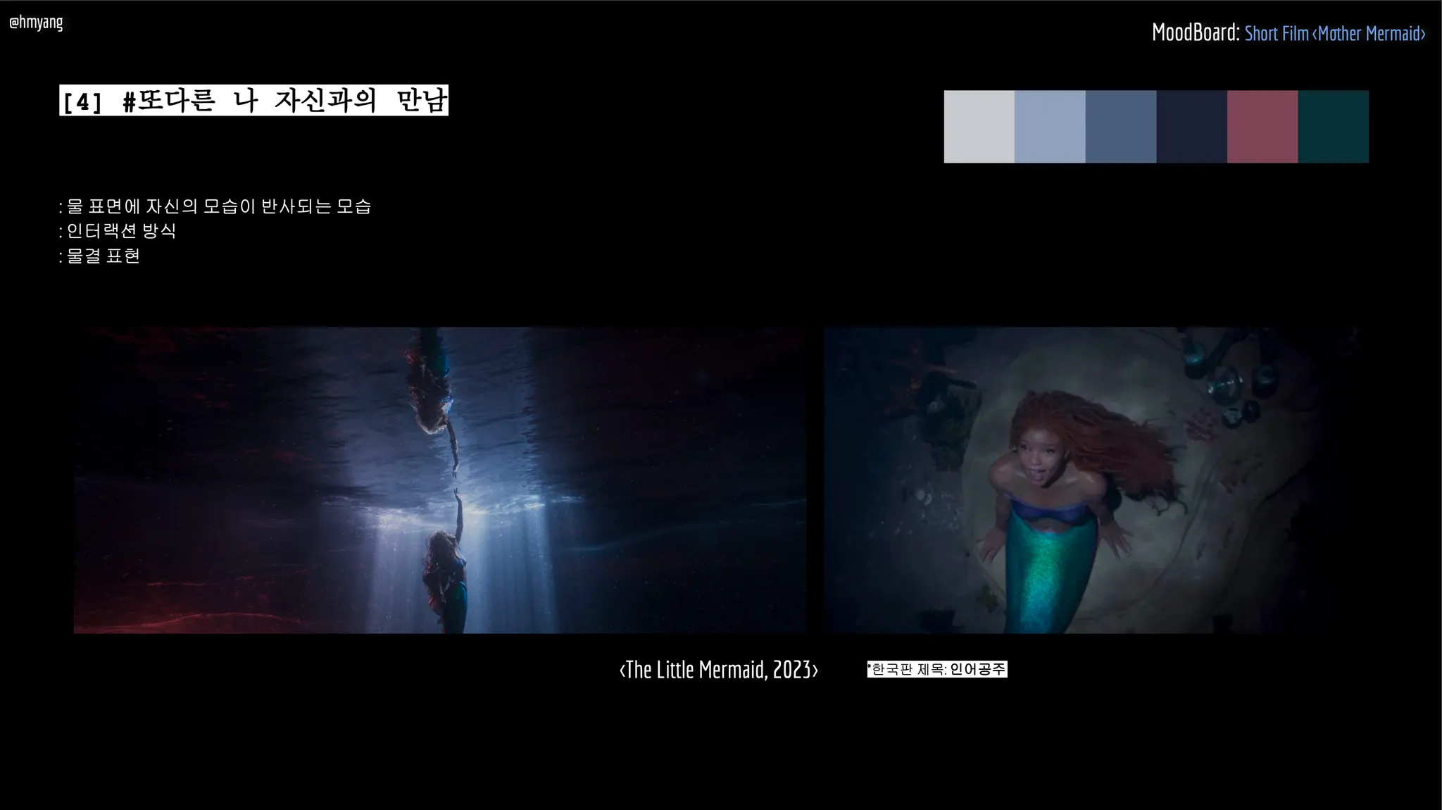 ‘Mother Memaid’ 에서는 Stable Diffusion 생성형 AI를 활용해 전통적인 무드 보드 제작 방식보다 빠르게 무드보드를 생성할 수 있었으며, 특히 수중 장면을 표현하는 데 있어 큰 이점을 얻을 수 있었다.