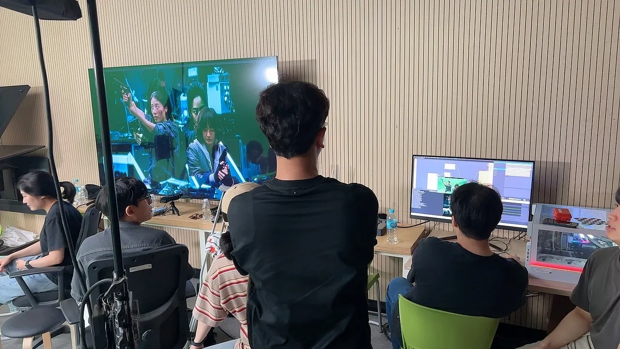 지난 22일 콘텐츠진흥원에서 EAC 센터에 방문해 주셨습니다. VILAB 연구원들이 그동안 갈고닦은 실력을 발휘해 직접 버추얼 프로덕션 시연을 선보였는데요. 이번 시연에서는 LED 월을 활용한 버추얼 프로덕션의 과정을 언리얼 엔진과 트래커를 실시간으로 연동해, 배경이 자유롭게 움직이는 모습을 생동감 있게 보여드렸습니다. 또한, 언리얼 엔진으로 구현한 가상 장소를 이용해 실제로 그 장소에 가지 않고도 촬영 구도를 확인할 수 있는 버추얼 스카우팅 기술도 시연했습니다. 이 기술을 통해 가상의 배경과 인물의 구도를 손쉽게 조정할 수 있으며, 이를 위해 연구원들이 직접 모션 캡처 슈트를 착용하고 버추얼 휴먼을 연기해 그 과정을 더욱 실감 나게 보여주었습니다. 시연을 위해 며칠간 고생하며 준비한 김경중, 이도현 연구원 고맙습니다:D