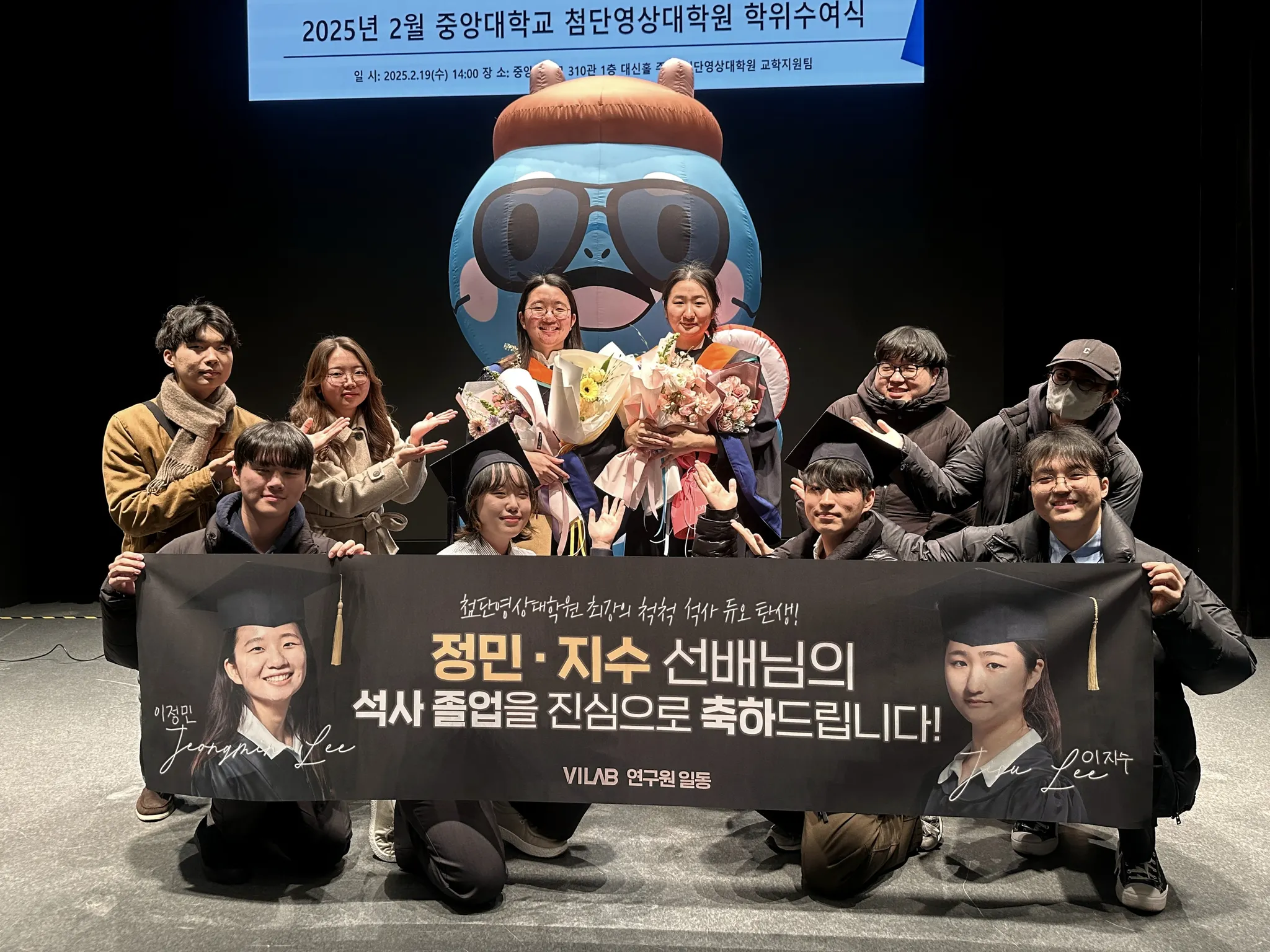 8월에 진행된 졸업식에서 지은수 연구원이 석사 학위를 수여받았습니다. VILAB 연구원들이 모두 함께 자리하여 진심 어린 축하를 전했습니다. 지은수 연구원의 졸업을 축하하며 앞날을 응원하는 마음으로 가득찬 뜻깊은 자리였습니다. 연구실에서 쌓아온 소중한 추억과 경험들이 앞으로의 길에도 큰 힘이 되었으면 좋겠습니다, 앞으로 이어질 길 위에도 늘 빛나는 성취와 행복이 함께하기를 VILAB이 진심으로 기원합니다!