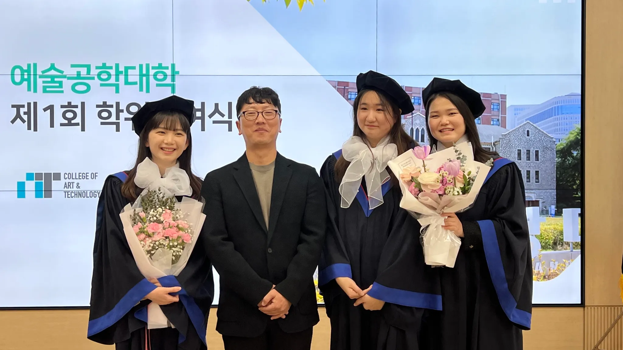 Virtual Interaction Lab에 입학한 석사 과정 이지수, 양헤민, 이정민 연구원의 학사 학위 수여식을 진행했습니다. 예술공학대학의 1기 졸업생들로, 코로나 여파로 잠잠하던 졸업식이 오랜만에 북적이고 설레는 분위기였는데요 :) 아쉽게도 이정민 연구원은 참석 못했지만, 4년 동안 학부 공부를 통해 재밌는 추억과 더불어 많은 것들을 얻었길 바라며 이 세 연구원의 졸업을 진심으로 축하합니다. 앞으로 Virtual Interaction Lab에서 더욱 재밌는 연구와 함께 석사 졸업식에서 봐요!